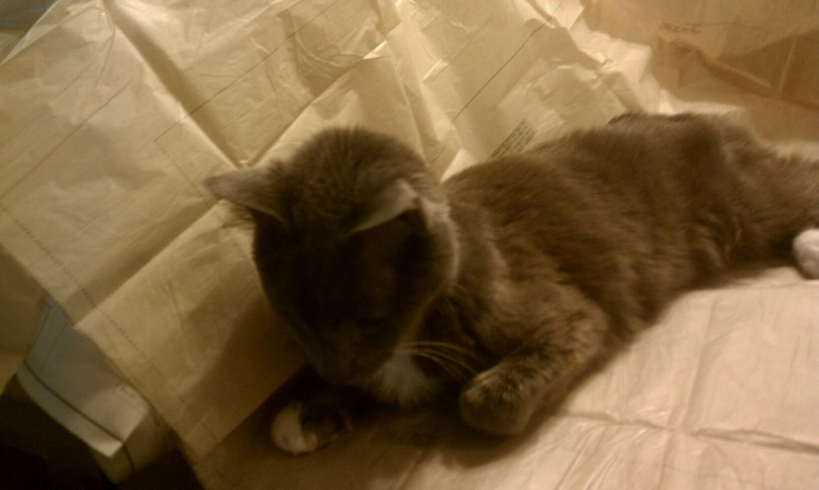 I have got to convince her that his butt is not her personal snack dispenser. Or convince the folks at Purina/TidyCat to come up with a hood attachment for the Breeze Litterbox.